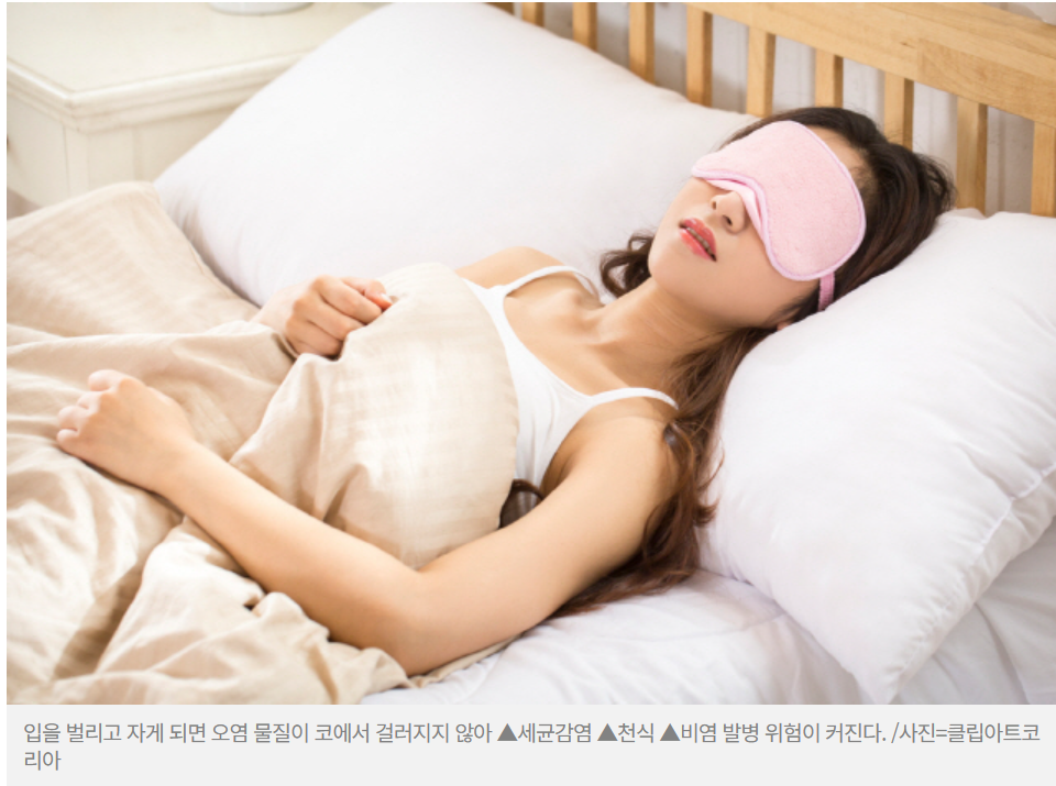 기본적으로 수면 자세는 사람마다 다릅니다. 이 때 사람마다 무의식적으로 팔을 올리고 자는 경우도 있고, 입을 벌리고 자기도 합니다. 하지만 자주 입을 벌리고 자면 면역력 기능과 피부 건강 등에 악영향을 줄 수 있어 주의해야 한다고 합니다.