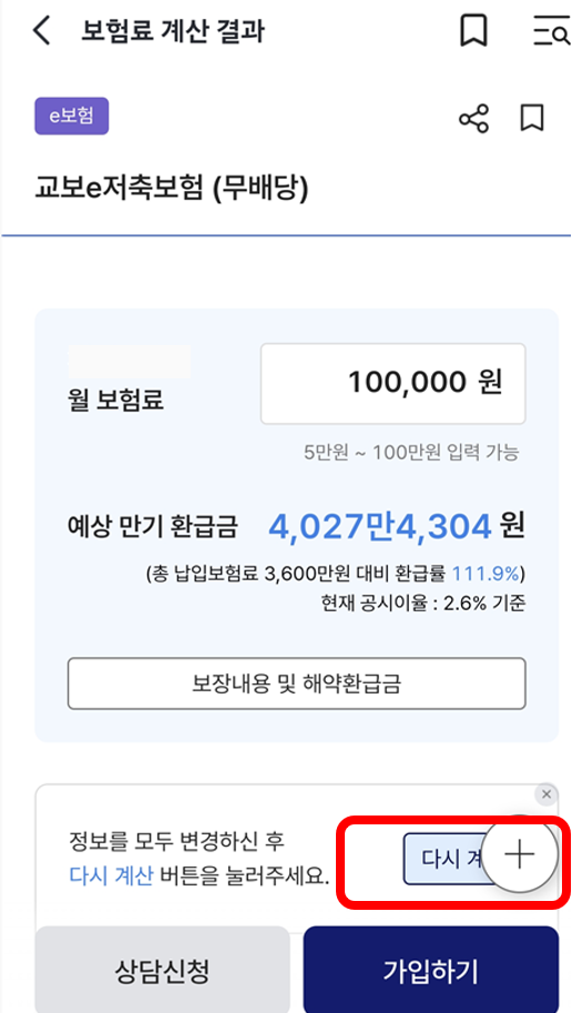 가입 종목은 교보e저축보험(무배당)상품인데요.