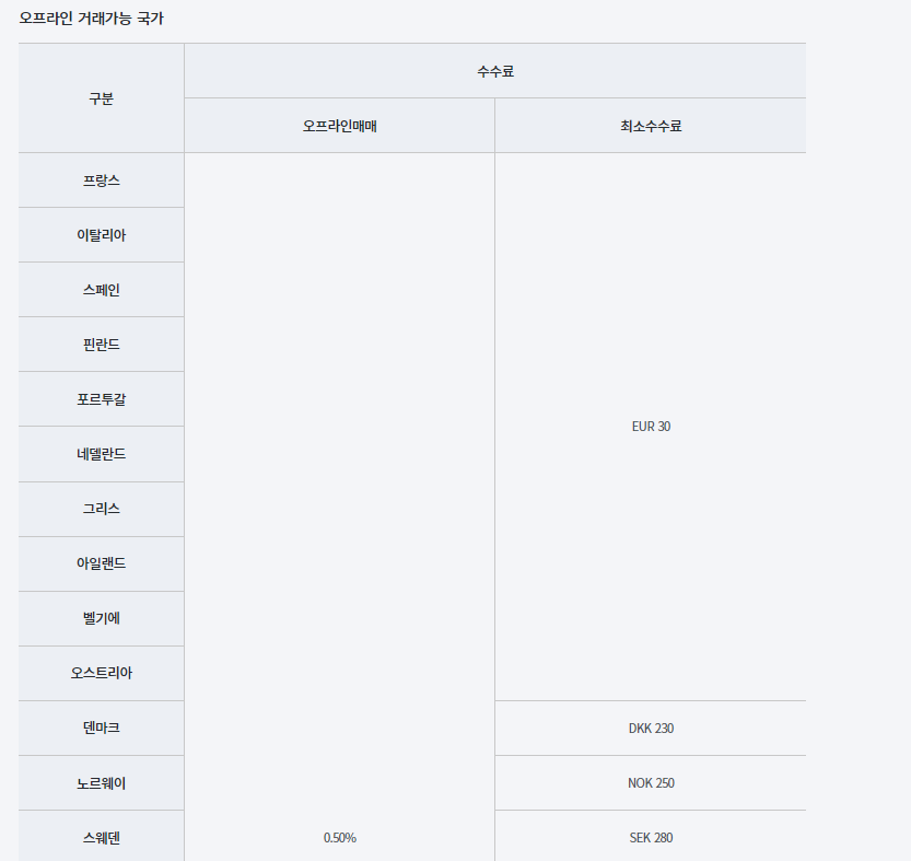 미래에셋증권의 경우 오프라인 매매의 수수료는 0.5%입니다.