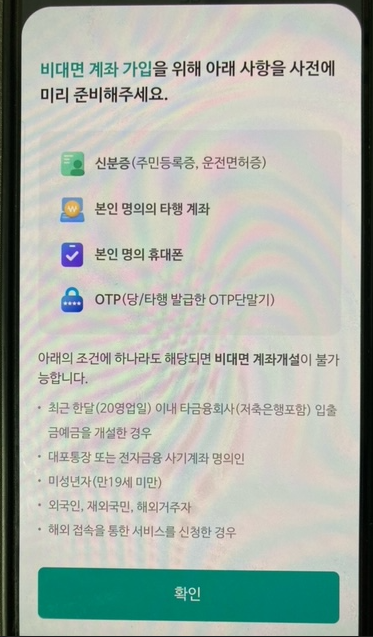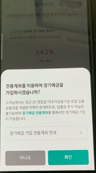 이 때 SB톡톡에서 비대면 계좌 가입을 하기 전에 신협등에서 입출금 계좌를 만들어서 20일 제한을 만드는 것이 중요합니다.