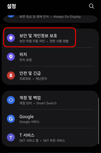 설정 - 보안 및 개인정보 보호 메뉴에 가서