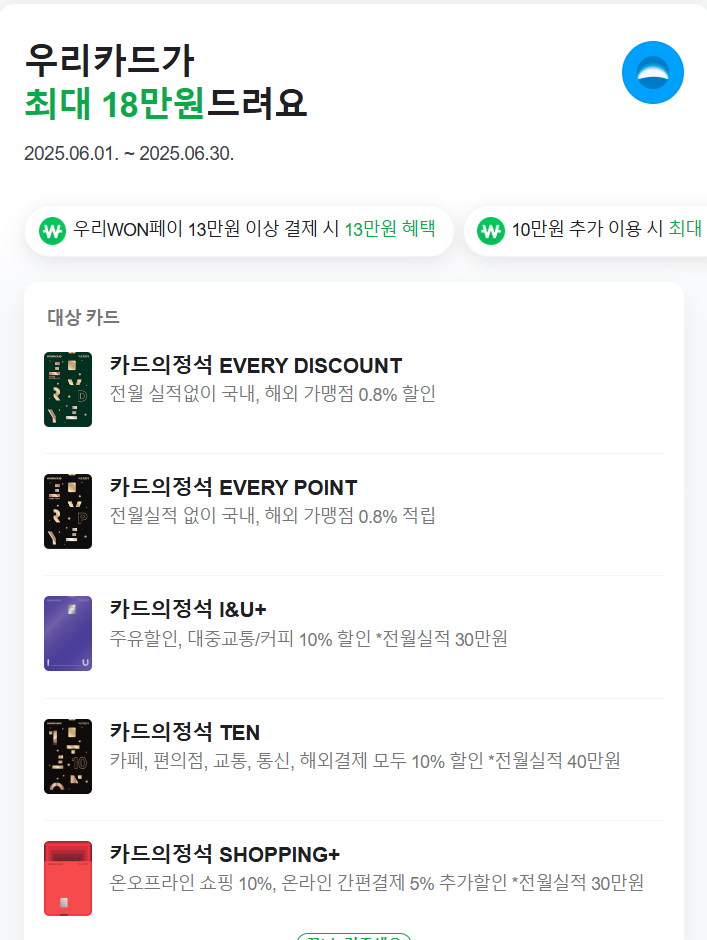 6월에 카드 테크는 이제 우리카드로 진행하는데요.