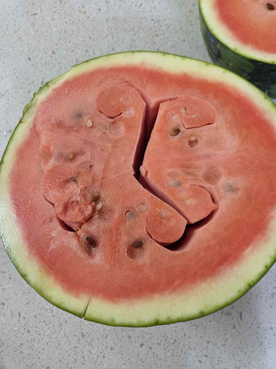 맛있게 먹을려고 수박을 잘랐더니 아래처럼 수박 모자이크 병에 걸린 수박에 당첨 ㅠ