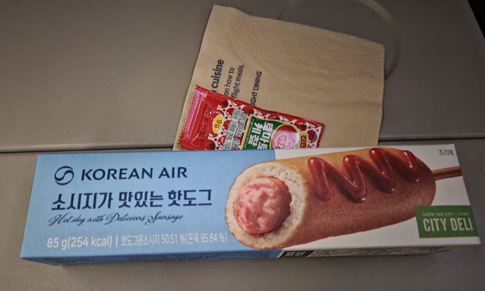 중간에 간식으로 소시지가 맛있는 핫도그가 나왔습니다.