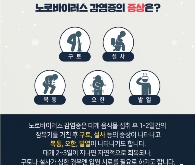 노로바이러스는 사계절 모두 문제를 일으킬 수 있지만, 영하 20도에서도 살아남을 만큼 저온에 강하다는 특징이 있는데요.
