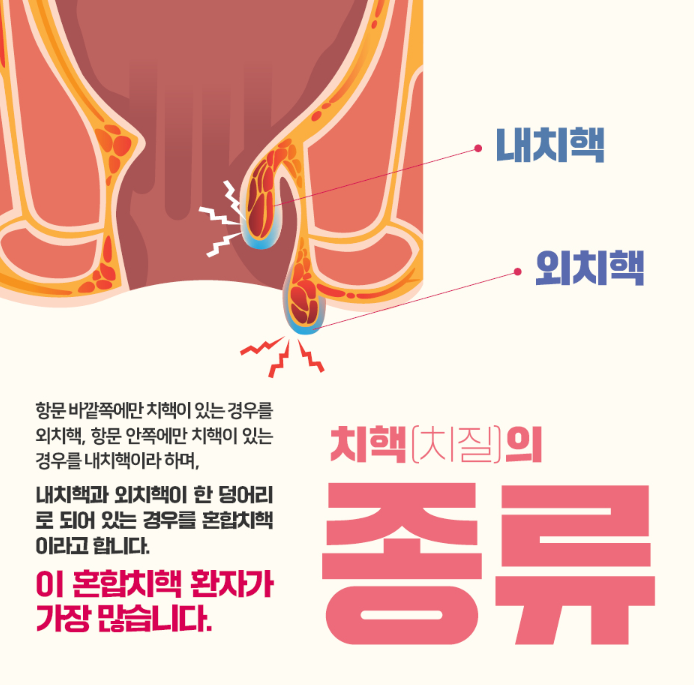 치핵이 발생하는 위치에 따라서 내부에 발생하면 내치핵,