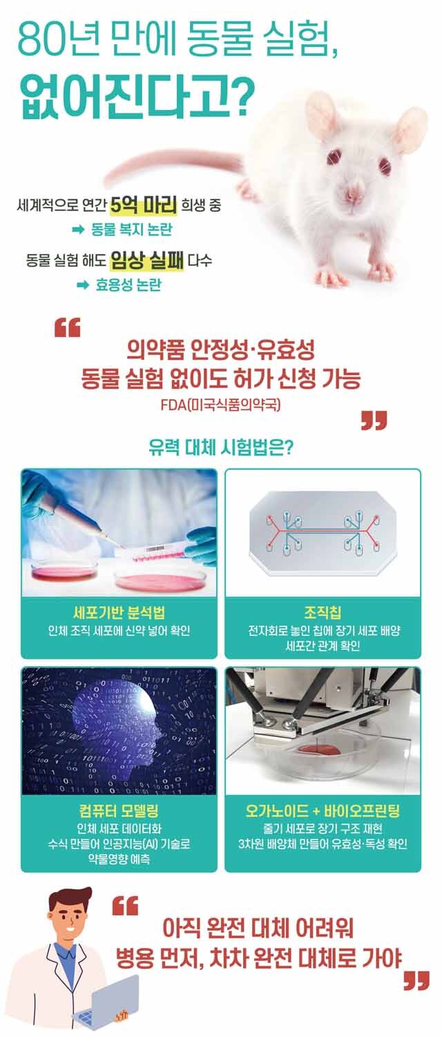 최근 신약의 임상실험 관련하여 동물심험이 없어진다는 기사가 나왔습니다.