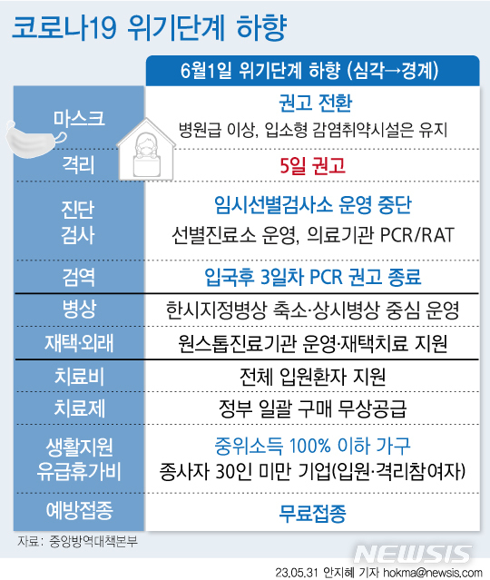 코로나19 위기 경보 수준이 '심각'에서 '경계'로 하향 조정됨에 따라 격리 의무도 권고로 바뀌게 되었습니다.