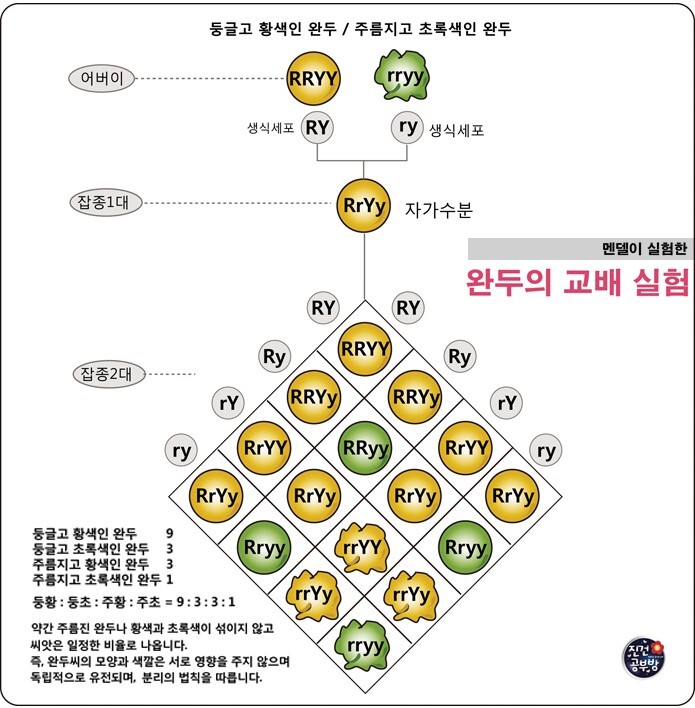 멘델은 이를 오나두의 교배 실험을 통해 확인하였는데요.
